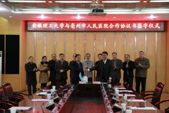 我校与亳州市人民医院经过充分协商,决定在亳州市人民医院成立安徽理工大学附属亳州医院及临床医学院。签字仪式于11月10日上午在校本部图北会议室举行。校长王其东,亳州市人民医院党委书记、院长杜运志等出席了签字仪式。签字仪式由校党政办公室主任郑为超主持。