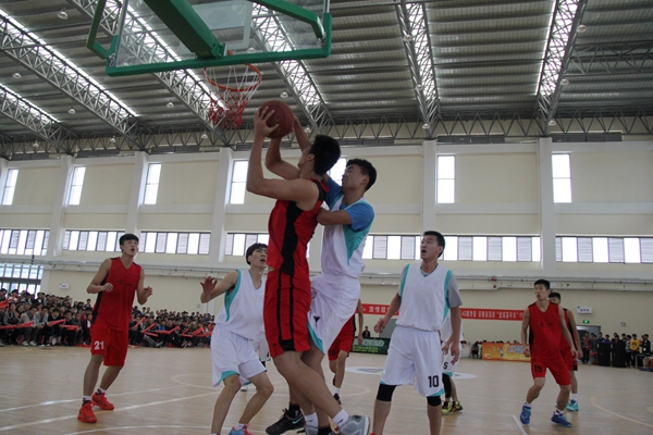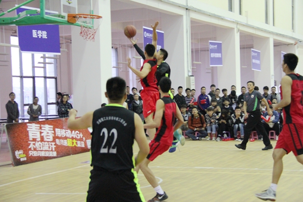 在我校啦啦操队篮球宝贝们青春靓丽的热舞表演后,安徽文一青年男子篮球队上、下半场分别与我校学生男子篮球队和青年教工联合会男子篮球队进行了精彩对决。上半场我校学生篮球队一开场就与安徽文一篮球队展开了激烈角逐,双方没有太多试探和保留,利用快速多变的快攻战术展开激战;下半场我校青年教师篮球队稳扎稳打,运用掩护、突分、传切、策应等阵地进攻、“3+2”的严防死守和逐步上升的身体对抗,与安徽文一篮球队打的是有板有眼、不分上下。我校篮球队的每次进攻得分,主场球迷都毫不吝啬地爆发出雷鸣般的掌声和欢呼声。经过4节精彩的比赛,最终由于与专业队实力的差距,我校篮球队以48:73的比分告终,安徽文一青年队赢得了比赛。
