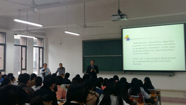 李圭玹在《大学生消费行为》专题报告中,深入分析了当代大学生消费心理及其消费行为等,以韩国的三星、LG、乐天等企业为案例,阐明中韩大学生消费文化的差异,引导大学生树立正确的消费理念,同时结合自身的研究,为同学们学习市场营销、组织行为学等课程提供了有益帮助,并与同学们开展了很好的互动。