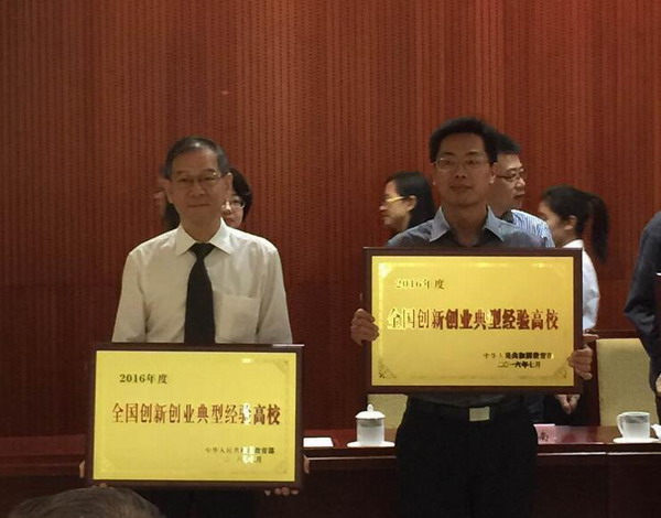 9月29日,教育部召开2016年度全国创新创业典型经验高校座谈会。会议介绍了2016年度全国高校创新创业总结宣传工作进展情况,宣布了全国50所创新创业典型经验高校名单,为50所创新创业典型经验高校授牌。校长王其东代表学校参加会议,并接受教育部的授牌。