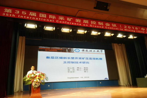 会议期间,华心祝教授作为本届学术委员会委员,主持了3场主题报告。杨科教授作了“断层区倾斜长壁开采矿压显现机理及控制技术研究(Mechanism of Strata Pressure Characteristics and Its Control Techniques in Faulted Areas Subjected to Longwall Mining)”的主题报告。