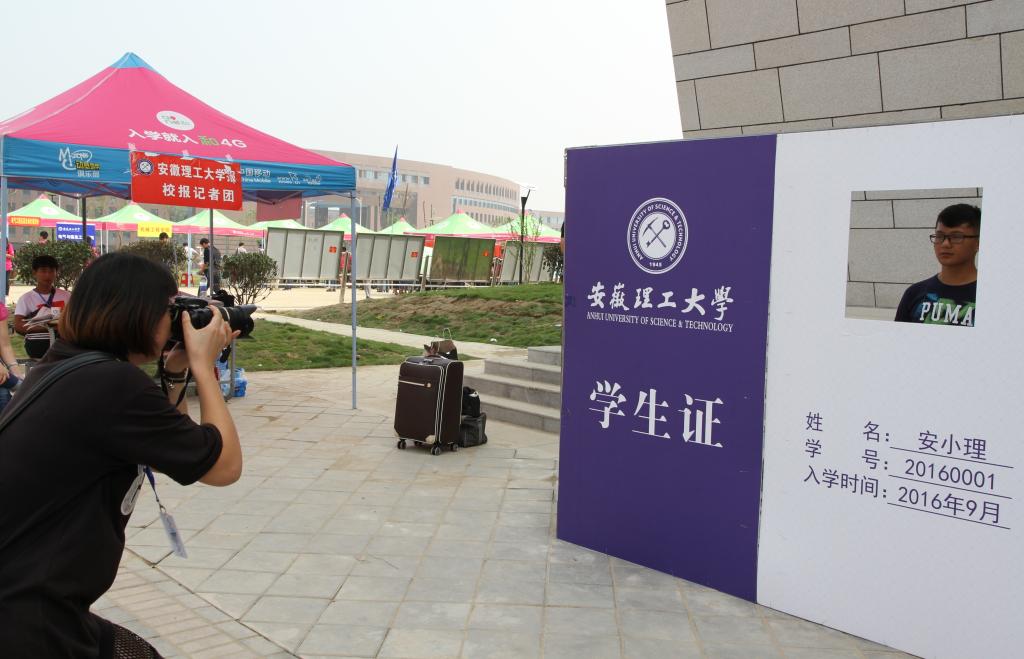 记者帮新生拍下入校的第一张照片