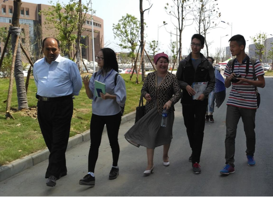 在众多的新生面孔中,来自新疆维吾尔族喀什市的阿布都色麦尔·热依扎一家人引起了记者的注意,阿布都说他和爸爸妈妈9月12日在家过完传统的古尔邦节之后就迫不及待地出发了。虽然旅途劳累,但爸爸妈妈坚持要来看看我的新校园。阿布都的母亲头戴着少数民族特有的纱巾,满满的异域风情,笑着和记者解释:“是我们坚持要来的,一定要来看看儿子的新校园。”临近中午,阿布都表示还没好好地逛逛校园呢,记者义不容辞承担起向导的任务,一路上边看边解释:“新校区的大门分为东西南北四个大门,分别叫做明理门、天工门、百川门、至善门;公共实验楼起名为百川大楼;学院楼西团组分别叫做宁远楼、静远楼、致远楼......。”阿布都对学校的环境、大楼、设施赞不绝口,并笑着说:“真是高端大气上档次,低调奢华有内涵啊!”