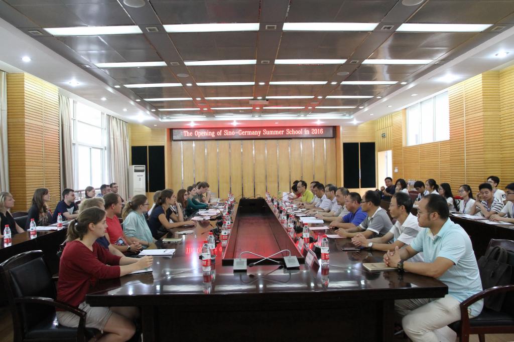 9月9日上午,由我校国际交流与合作处主办、测绘学院承办的2016中德大学生夏令营在图北会议室举行开幕式。校长王其东教授出席开幕式致欢迎辞并介绍我校办学情况。德国奥斯纳布吕克应用科技大学Rudiger Anlauf 教授、Helmut Meuser教授致答谢辞并介绍了德方与我校合作历程。