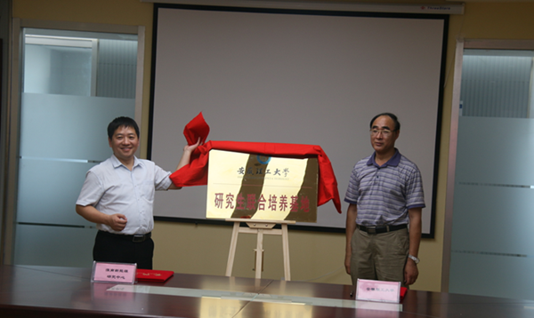 签约仪式上,郑明东和中科院等离子体物理研究所常务副所长宋云涛共同为“安徽理工大学研究生联合培养基地”进行签约和揭牌。