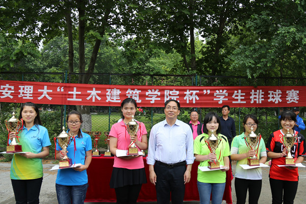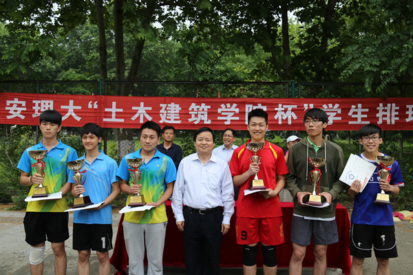 5月20日下午,由体育部主办的2016年“土木建筑学院杯”校大学生排球赛落下帷幕,体育部党总支书记、主任杨斌,土木建筑学院院长马芹永出席了颁奖仪式并向取得优异成绩的代表队颁发了奖杯和奖牌。闭幕式由体育部副主任邹瑞主持。