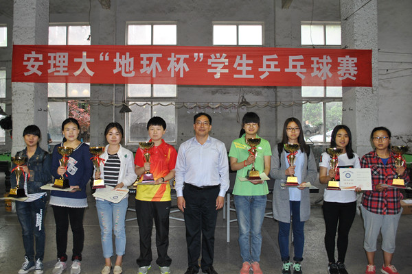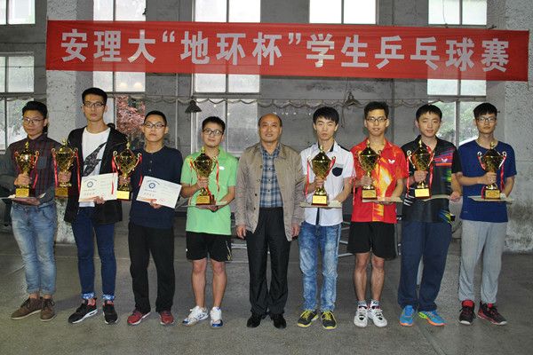 5月15日下午,由体育部主办、地球与环境学院协办的2016年“地环杯”校大学生乒乓球团体赛和乒乓球男女单打比赛在校本部体育活动中心落下帷幕。体育部党总支书记、主任杨斌,地环学院党委书记盛鹏飞出席了颁奖仪式并向取得优异成绩的单位和运动员颁发了奖杯和荣誉证书。闭幕式由体育部副主任邹瑞主持。