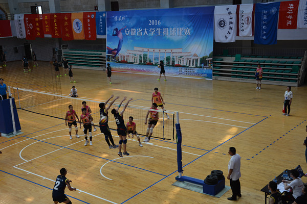 5月1至8日,由安徽省教育厅主办的2016“儒风杯”安徽省大学生排球赛在安徽财经大学举行。经过7天33场的紧张激烈比赛,我校大学生男排代表队团结奋战,顽强拼搏,取得了男子甲组第四名的好成绩,这是我校男子排球队首次进入省内四强。