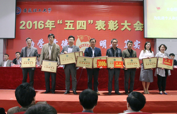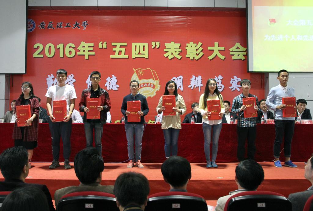 4月28日下午,在“五四青年节”来临前夕,学校在北校区图书馆二楼报告厅召开2016年“五四”表彰大会。校领导郭永存、叶醒狮、王洪、王其东、孟祥瑞、周峰等出席会议并为受表彰的先进集体和先进个人颁奖。