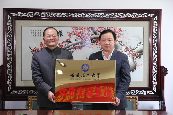 黄友锐代表学校与穆俊稳共同签署了“安徽理工大学优质生源基地”共建协议书。