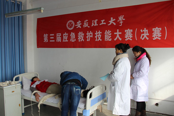 大赛历时近一个月,分为预赛、理论培训、复赛、操作实训和决赛五部分。赛前,按照文件要求,医学院组织相关专家制作《应急救护知识手册》,发放给参赛选手。预、复赛均以笔试为主,考察内容选自《应急救护知识手册》和理论培训内容。竞赛组委会委托医学院于12月4日在西校区图书馆二楼报告厅对全校参加复赛的300多名师生进行理论培训。12月7日,来自各学院的复赛选手在西校区进行了复赛,12月10日至11日,在西校区九楼护理学教研室对参加决赛的49名师生进行了操作实训。