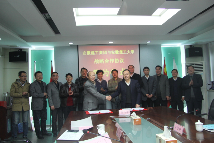 郭永存和赵时运分别代表学校和集团公司签订战略合作协议书。根据协议书精神,校企双方本着“优势互补、资源共享、互惠双赢、共同发展”的原则,建立全面的产学研中期(2014年9月-2019年8月)战略合作关系,充分发挥安徽理工大学学科、人才、技术、信息等教学科研资源优势,和安徽建工集团政策、资金、市场及产业化优势,围绕土木、建筑、施工及工艺等重大工程技术问题开展协同攻关,实现“校企合作、产学共赢”。合作协议进一步明确了双方合作的具体内容、方式和渠道,提出了打造高水平科技创新平台、共建研究生和博士后联合培养基地、构建研究生创新实践中心、双向委培、优先录用优秀毕业生等一系列合作举措,为双方下一步深入合作奠定了良好基础。