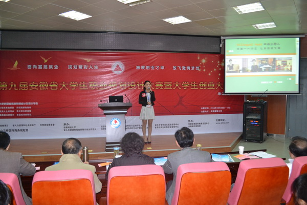 本次大赛由省教育厅、省人力资源和社会保障厅、共青团安徽省委主办,以“面向基层就业,规划精彩人生;施展创业才华,放飞激情梦想”为主题。我校自9月份启动该项赛事以来得到了各学院和广大同学们的积极响应和参与,分为院级初赛、学校复赛和学校决赛等环节,历时近3个月,参与学生近千人次,取得了良好的育人效果。