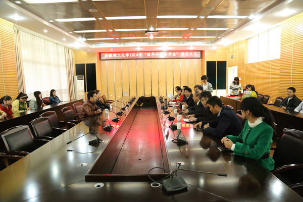 11月12日下午,“国华科技奖学金”颁奖仪式在校本部图北会议室举行,副校长叶醒狮、校督导员张明旭出席颁奖仪式。我校杰出校友、北京国华科技集团有限公司董事长赵树彦出席仪式并为获奖同学颁奖。材料科学与工程学院院长朱金波主持仪式。