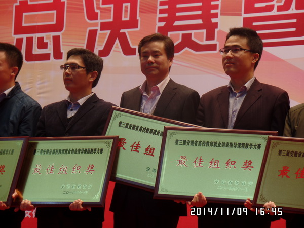 11月8日至9日,第三届安徽省高校教师就业创业指导课程教学大赛总决赛在安徽建筑大学隆重举行。我校化学工程学院孙艳菊老师从半决赛中脱颖而出顺利进入总决赛并获得二等奖,学校同时荣获“最佳组织奖”荣誉称号。省高校毕业生就业委副主任、省教育厅副厅长杨德林出席颁奖仪式并讲话。