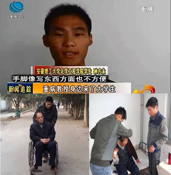 以后的两年多的时间里,孙方永每周都会到这个家庭,帮侯波老师洗澡、拿药、送医院、打扫卫生,平常还推着轮椅带侯波老师散步。侯波老师需要看病、住院治疗时,他都会随叫随到。随着侯老师身体状况的恶化,再加上,这个社区还有其他需要帮扶的困难老人,这让孙方永感受到需要有更多的人参与到帮扶中来。作为班长他开始发动班级同学,一起到社区走访、调查,摸清了一些困难老人的的住址、电话、健康状况、收入情况、亲情情况、邻里关系等信息。帮扶对象的增加,需要一个强大的团队做支撑,于是他成立了一个“暖阳爱老团”和大学生帮扶困难老人爱心公益联盟,并建立网络平台,招募志愿者。经过两年多不断地实践,暖阳爱老帮扶团队逐渐壮大。目前,团队成员已从最初的5名扩大到58名,成员中有学生和老师,有医院的医生和医学专业的同学,有淮南财政局的工作人员和区政协委员,有社区的老人和敬老院的负责人。帮扶范围也从1个社区扩大到淮南市的6个社区,帮扶对象也从开始时侯波、侴万禧、李元福3位老人渐渐扩大到了50余位。他们的事迹经淮南电视台、颍州晚报、中国大学生在线,安徽青年网等媒体报道后,受到社会的广泛好评。