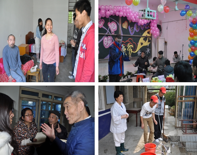 在帮扶规模扩大的现实下,团队也意识到老年人不仅仅需要物质上的帮助,还需要精神上的关爱。暖阳爱老团就充分利用团队成员专业和工作优势,深化帮扶内容,从帮困难老人打扫卫生、代购物品、陪同就医的生活照料和提供看病咨询、健康知识讲座、义诊服务的医疗保健外,到利用雷锋月、青年节、教师节、重阳节等节假日进行慰问和慈善捐助;再到依托学院社团活动,邀请老教师观看、参与晚会进行文体娱乐和陪老人聊天交流、读书读报、心理疏导的精神关爱。系列帮扶活动的开展,从本质上帮助老人解决困难、丰富生活、陶冶情操、促进健康,使他们老有所依、老有所乐。