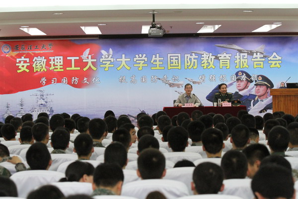 4月29日下午,应我校邀请,淮南市委常委、淮南军分区司令员刘礼叶大校在9楼报告厅为学校师生作了题为《国家安全形势》的专题报告。副校长王其东主持报告会,近400名师生代表聆听了报告。
