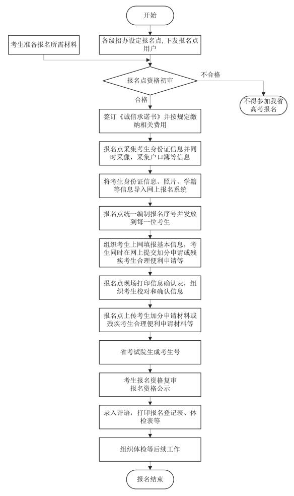 (一)考生报名基本信息采集工作在市、县招生考试机构统一安排下,由各报名点读取考生的第二代居民身份证信息、采集考生照片和户籍、学籍等信息,同时组织考生在网上由本人录入其它信息。报名点应指派专人指导考生按规定认真如实完整填写相关内容,考生应对本人所录入信息的真实性负责。