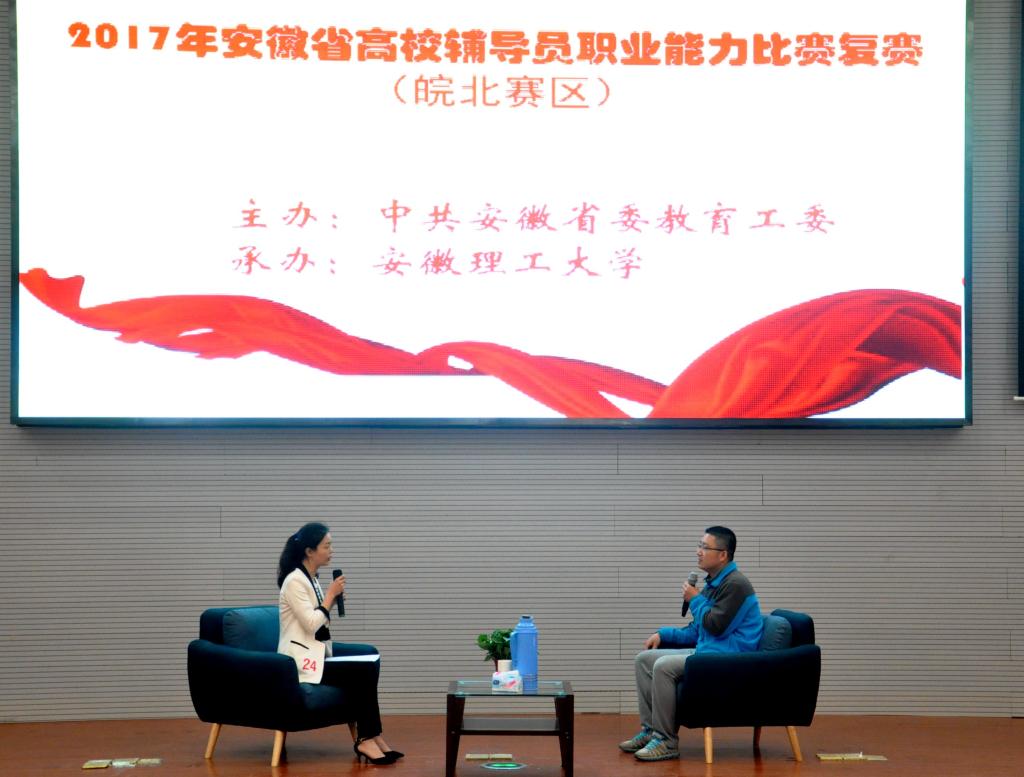 3月11日至13日,由安徽省委教育工委主办、安徽理工大学承办的2017年安徽省高校辅导员职业能力大赛复赛(皖北赛区)在我校新校区成功举行。经皖北地区25所高校选拔推荐的39名辅导员参加了本次大赛的激烈角逐。校长王其东出席大赛并为获奖选手颁奖。省教育厅思政处副调研员张英明作了总结发言。
