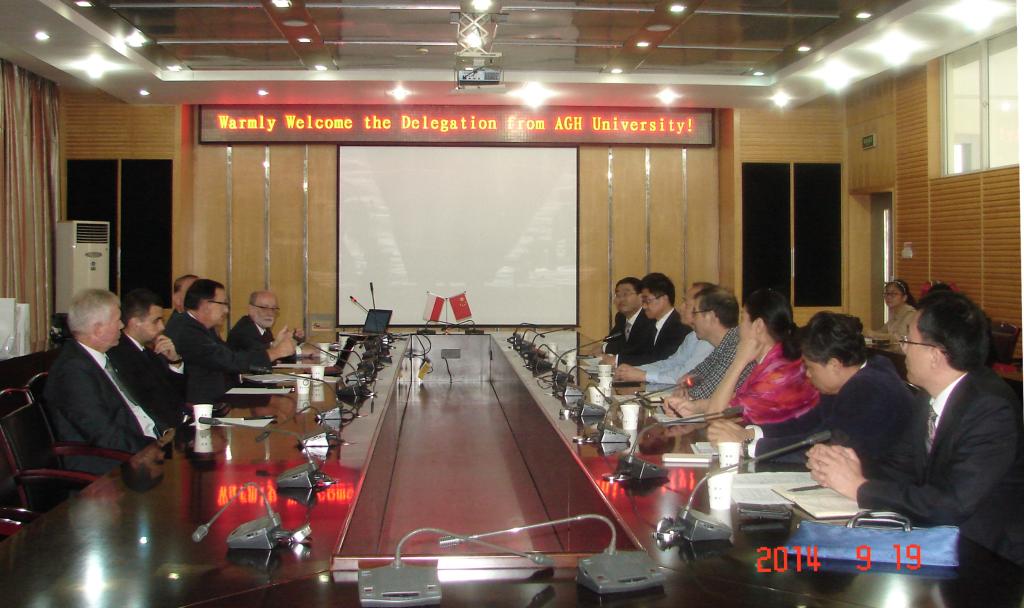 9月19日下午,校长郭永存、副校长王其东在图北会议室会见了AGH理工大学代表团中国合作事务校长代表Stanislaw Nawrat教授一行,中国煤炭工业协会国际合作部副主任苏传荣出席了会议。 郭永存对AGH理工大学代表团的来访表示欢迎,并简要回顾了两校27年来在教学、科研、人才培养等方面的合作。王其东回顾了两校开展合作办学的筹备工作,并希望两校联合培养协议能顺利实施。 Nawrat Stanislaw教授介绍了波兰AGH...