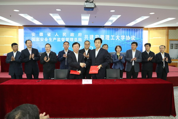 10月30日上午9点,安徽省人民政府与国家安全生产监督管理总局共建安徽理工大学签约仪式在校本部9楼报告厅隆重举行。国家安全生产监督管理总局副局长徐绍川、安徽省人民政府副省长谢广祥出席签约仪式并讲话。中国煤炭工业协会副会长赵岸青,国家安全生产监督管理总局人事司副司长李生盛,安徽省人民政府副秘书长吴行,安徽省委教育工委书记、省教育厅厅长程艺,淮南市人民政府市长王宏,安徽省安全...