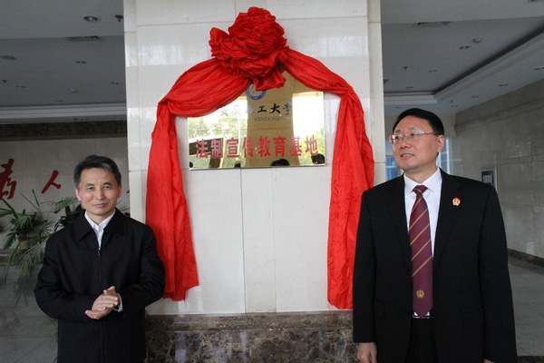 摄影:吕祥勇 11月6日下午,安徽理工大学法制宣传教育基地在淮南市中级人民法院揭牌。校党委常委、党委副书记王洪,淮南市中级人民法院党组书记、院长宋长士签署了法制宣传教育基地的建设协议,并共同为基地揭牌。揭牌仪式由市中级人民法院政治部主任查政权主持。校党委宣传部部长吴照明,毕业生就业工作处处长谢振安,思政部主任徐其清,外国语学院副院长王宗华,党委宣传部副部长虞尚元,市中级人民法院法官管理处、...