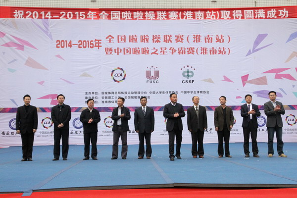 开幕式淮南市人民政府副市长阮怀楼讲话校党委书记颜事龙致辞并宣传开幕 11月8-9日,由国家体育总局体操运动管理中心、中国大学生体育协会、中国中学生体育协会共同主办,安徽理工大学及全国啦啦操委员会承办的2014-2015年年全国啦啦操联赛(淮南站)暨中国啦啦操之星争霸赛(淮南站)在我校正式开赛。本次赛事共有来自安徽和周边省市的1186名啦啦操选手参与。 8日下午,2014-2015年全国啦啦联赛(淮南站...