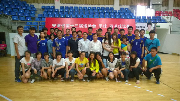 5月10日上午,安徽省十三届运动会高校部手球比赛在安庆市潜山县体育馆拉开战幕。共有来自省内12所高校19支代表队、300余名运动员参加了比赛。经过5天39场的激烈角逐,我校男、女手球队分别荣获男子甲组冠军,女子甲组亚军的好成绩,为学校争得了荣誉,扩大了影响,提高了我校的知名度。同时,我校代表队杨帆、赵东、马瑶和陈晨还获得了大赛优秀运动员的荣誉称号。 5月14日,副校长刘泽功在体育部书记杨斌的陪同...