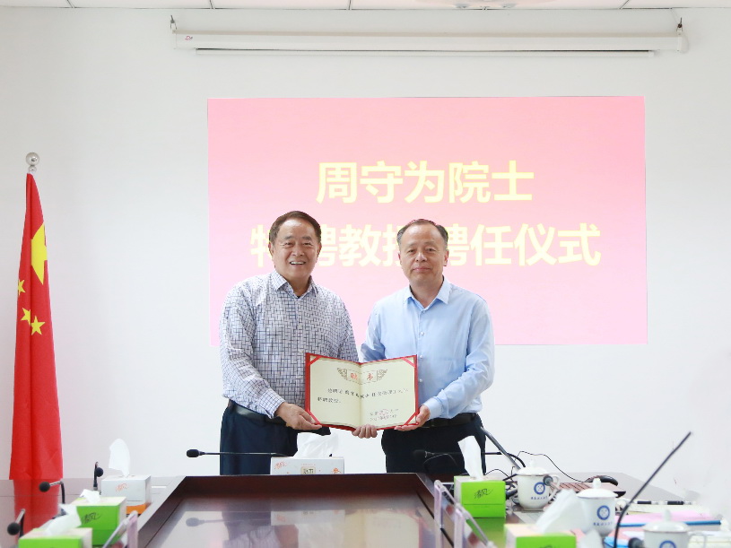 5月24日上午,学校在舜耕楼1121会议室举行聘任仪式,聘请中国工程院院士、中国科学技术协会副主席周守为为我校特聘教授。校党委书记郭永存,党委副书记、校长袁亮,党委副书记、常务副校长虞宝桃出席聘任仪式。郭永存为周守为院士颁发聘书。聘任仪式由虞宝桃主持。郭永存为周守为院士颁发特聘教授聘书(摄影:施培松)袁亮代表学校对周守为院士的加盟表示热烈的欢迎和衷心的感谢,对周守为院士在国家深水战略、维护海洋权益、建...